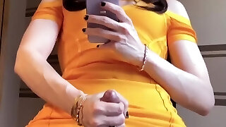 引人注目的Tgirl斯凯扮演着她的油xxl胸部和自慰
