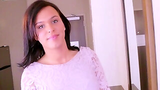 害羞的变性新手伸展她的屁股洞与一个巨大的假阳具玩具